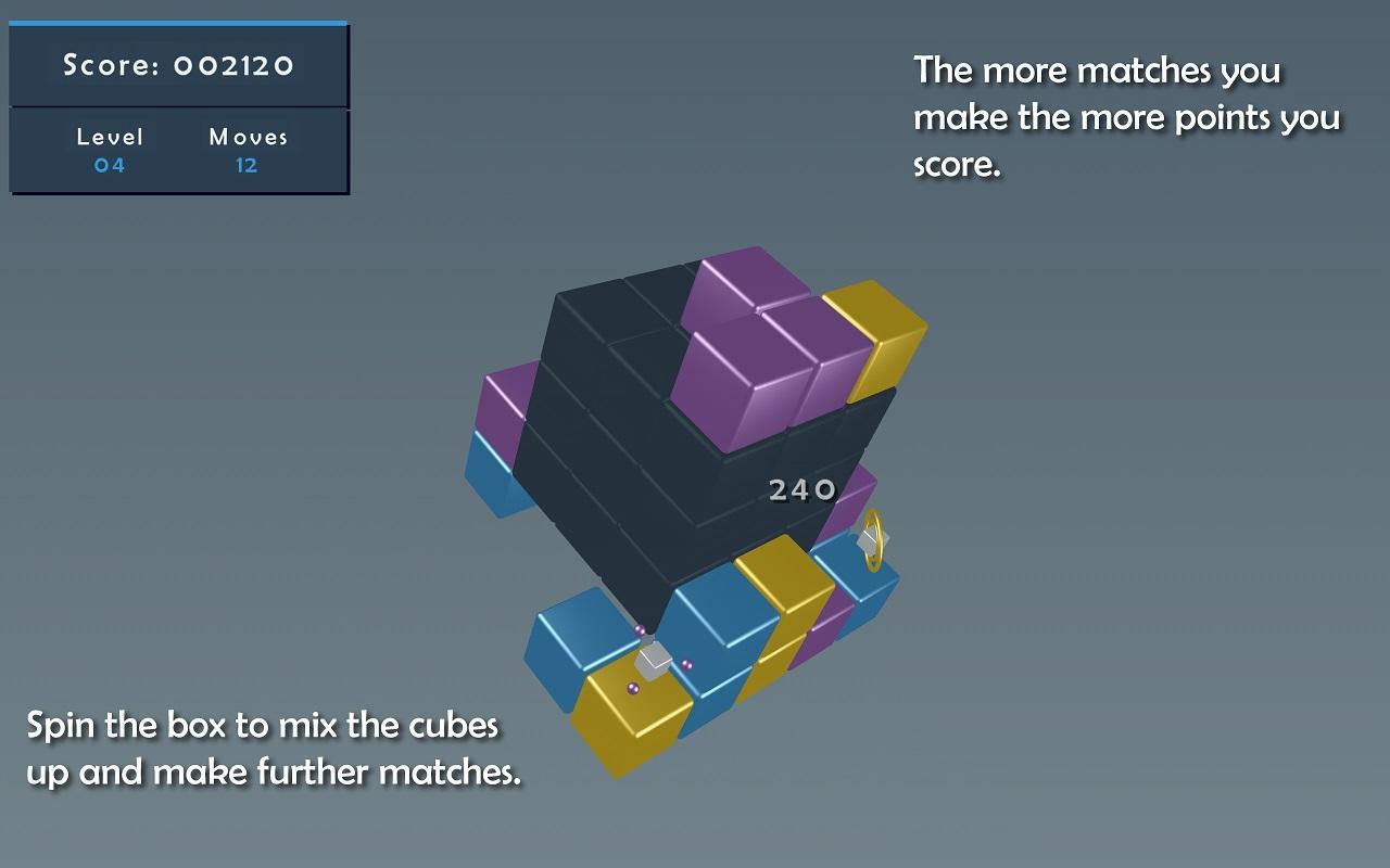 Combinando 3, 4, 5 ou mais cubos ainda mantém o mesmo fascínio, mas mover esses cubos em 3D ao redor da caixa é muito mais dinâmico. Combo, reações de cadeia e power -up estão aqui, mas agora você pode girar a caixa e movê -las em torno da grade - dando a você muito mais controle do jogo e como você joga.